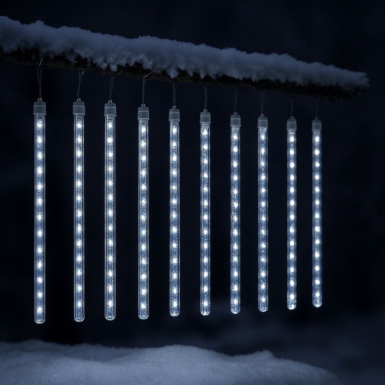 Ciesz się pięknymi świątecznymi lampkami w kształcie sopli z efektem meteorów lub wodospadu. Jest przeznaczony do użytku wewnątrz i na zewnątrz. Oświetlenie nadaje się nie tylko na Boże Narodzenie, ale na każdą okazję, szczególnie w chłodniejszych porach roku.