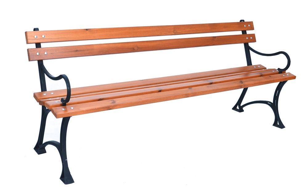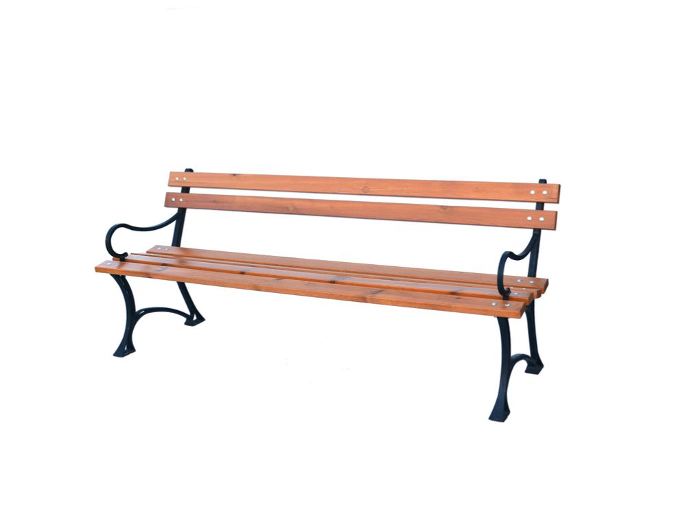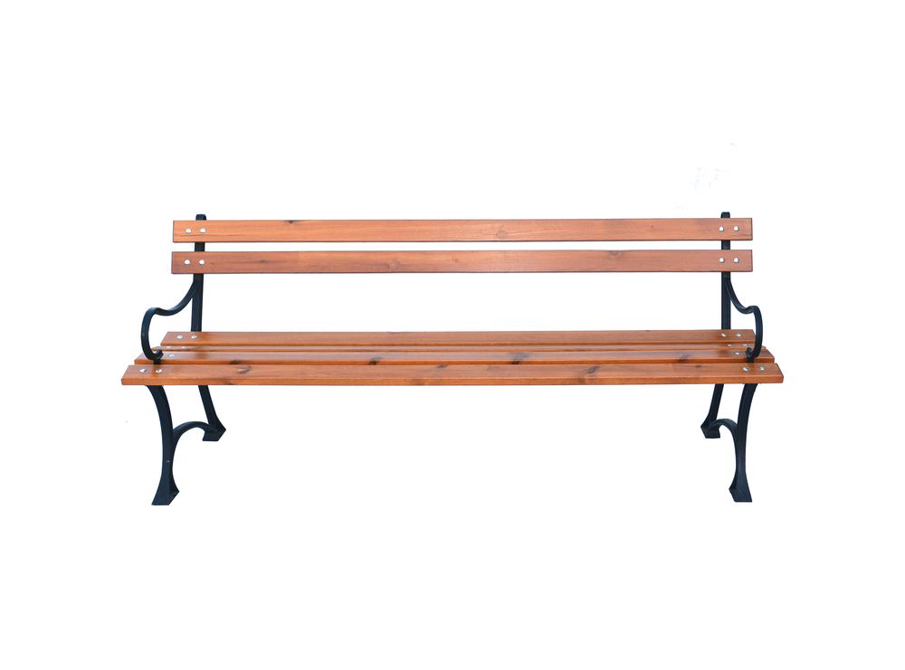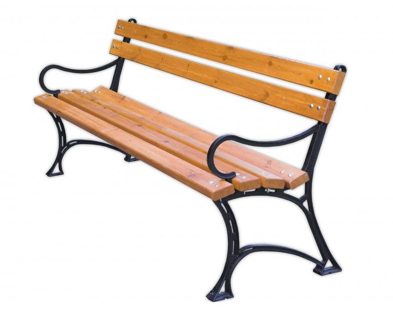 Bardzo stabilna i trwała ławka do parków i ogrodów. Żeliwna konstrukcja w kolorze czarnym. Powierzchnia siedziska i podparcia jest wyposażona w drewniane belki. Doskonałe przetwarzanie zapewnia długoterminową funkcjonalność i trwałość. Certyfikat FSC gwarantuje klientom, że drewno, z którego wykonany jest produkt, jest dobrej jakości i zdrowe.