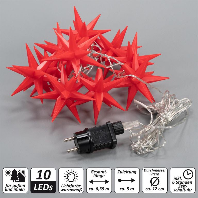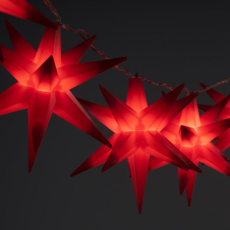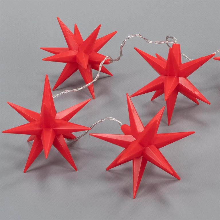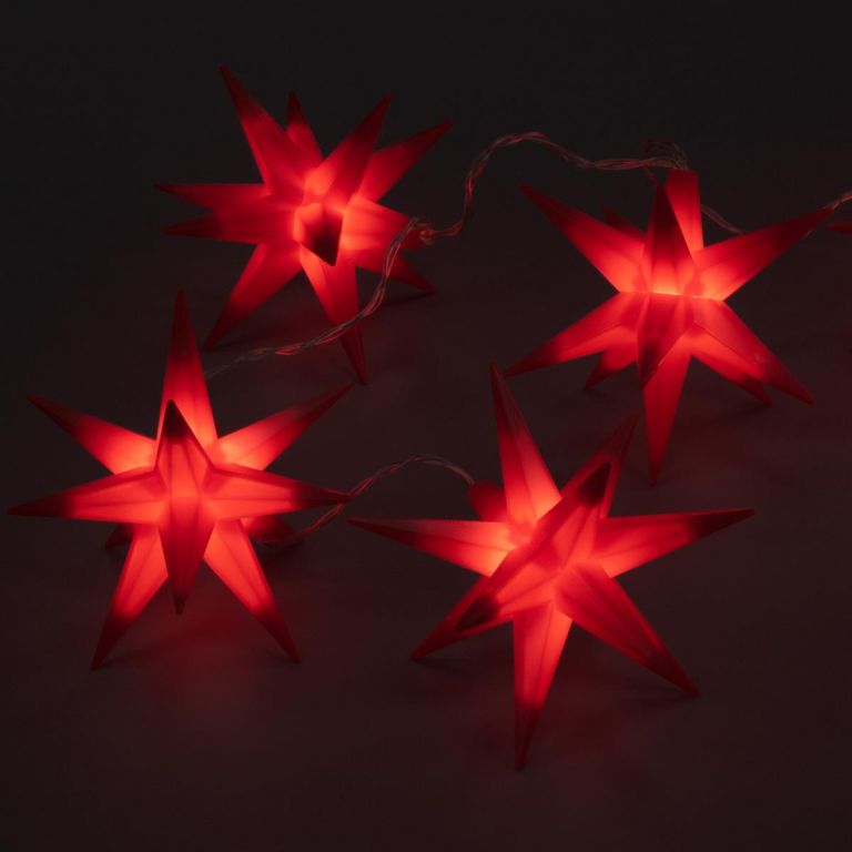 LED Świąteczne gwiazdki, czerwone, 10 diod LED, przezroczyst