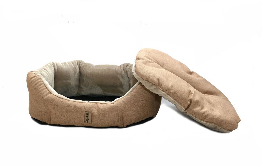 Ręcznie szyte legowisko dla psa wykonane z mocnej i wytrzymałej tkaniny z piankowym wzmocnieniem.