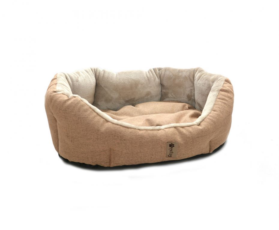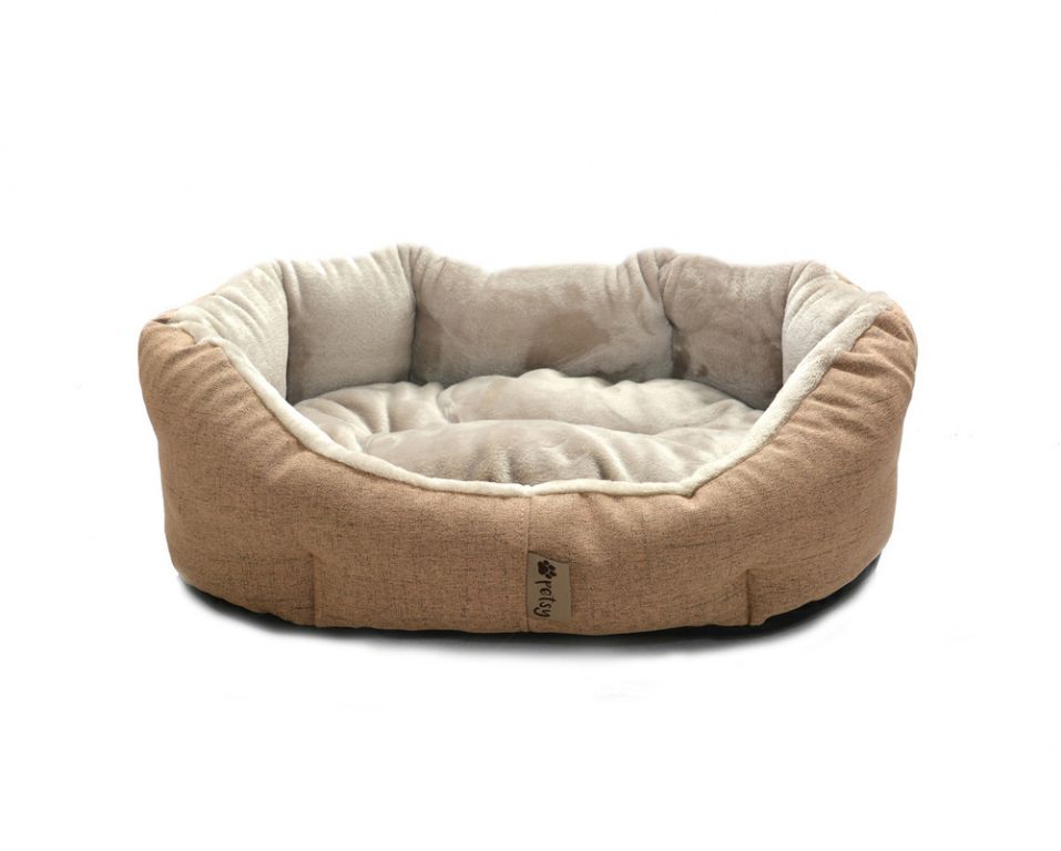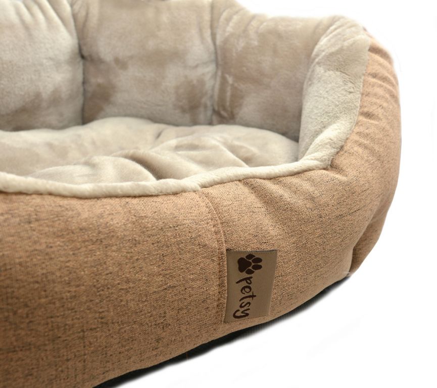 Ręcznie szyte legowisko dla psa wykonane z mocnej i wytrzymałej tkaniny z piankowym wzmocnieniem.