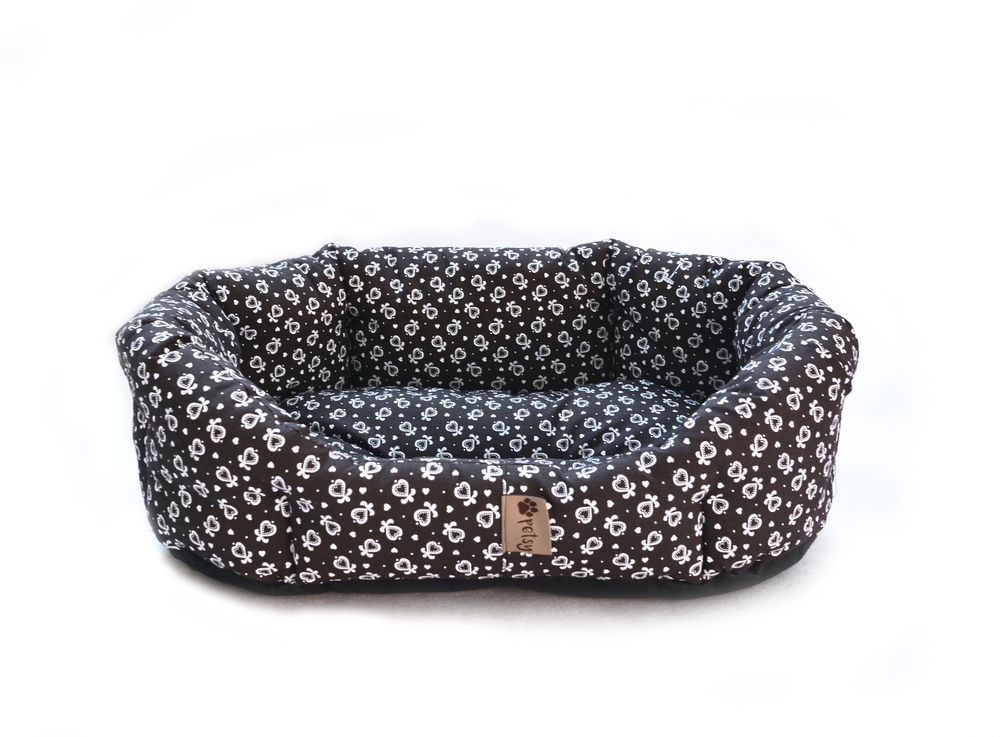 Ręcznie szyte łóżko najwyższej jakości. Łóżko wykonane jest w 100% z bawełny + wodoodpornego spodu i wypełnione jest pustym włóknem. Można prać ręcznie (do 30 ° C). Aby zapobiec nierównomiernemu umieszczeniu wyściółki, łóżko jest zszywane w kilku punktach.