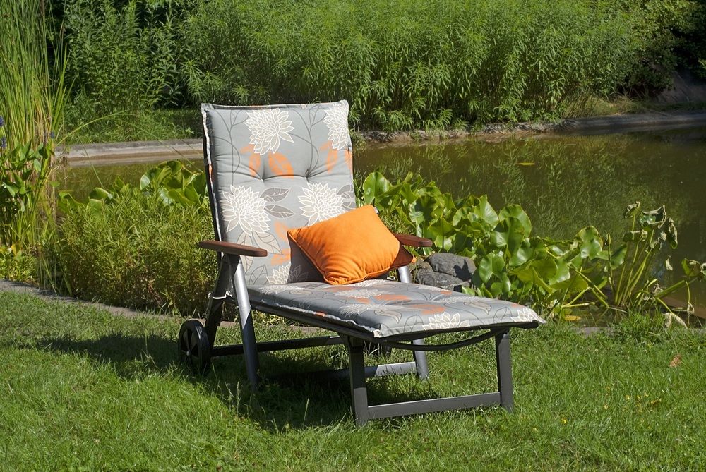 Regulowanz leżak (7 pozycji) pozwoli Ci na największy relaks w Twoim ogrodzie. Rama aluminiowa w kolorze srebrnym z podłokietnikami - drewno eukaliptusowe FSC. Tkanina 4x4mm jest odporna na warunki atmosferyczne - czarna. Aby ułatwić przemieszczanie, leżak jest wyposażony w kółka. Certyfikat TÜV