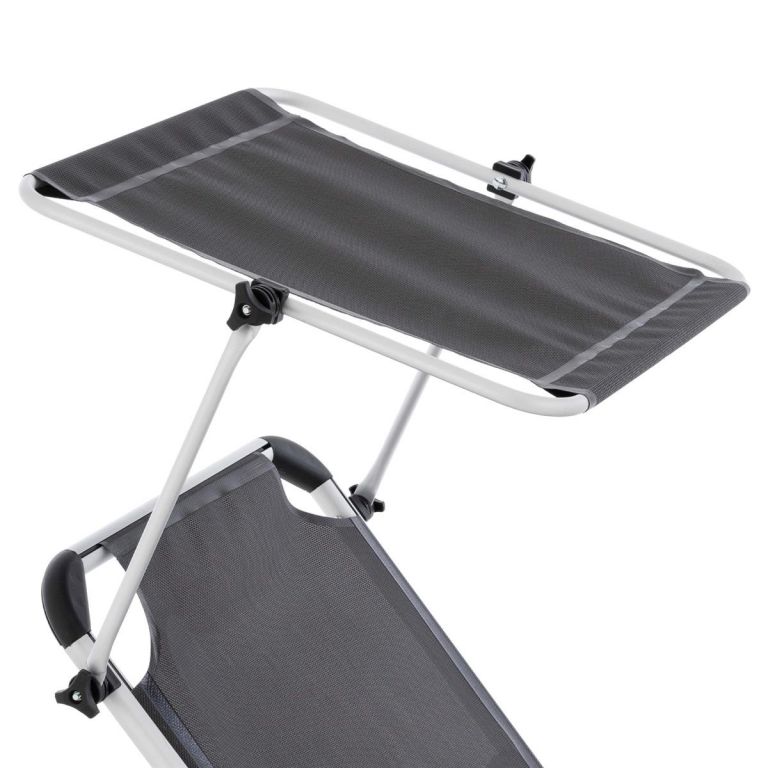 Odpoczywaj stylowo z antracytowym leżakiem z osłoną przeciwsłoneczną – komfort, cień i spokój w ogrodzie oraz podczas letnich podróży.