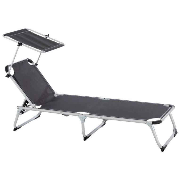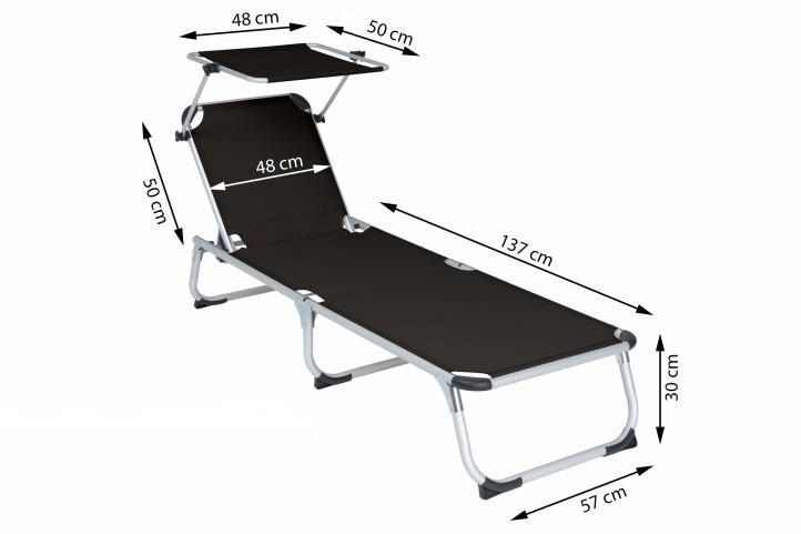 Leżak ogrodowy, składany z daszkem, antracyt 187 cm