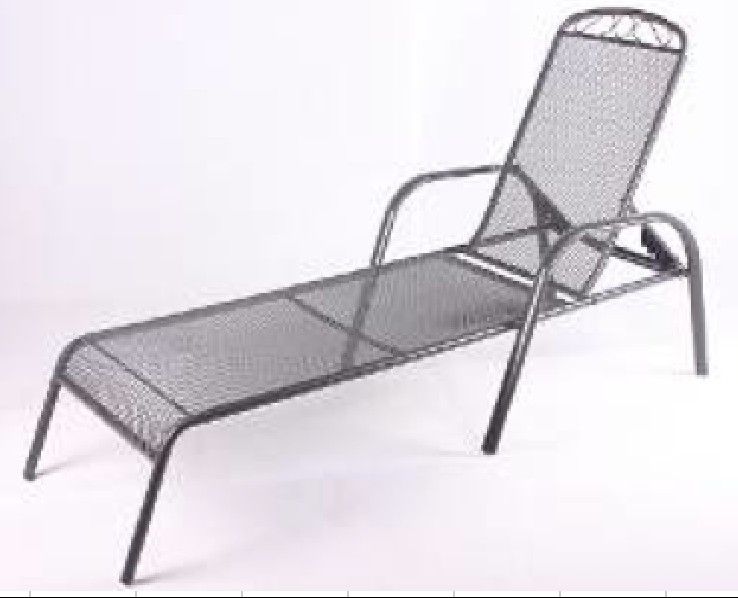 Metalowy leżak ogrodowy wypełniony drutem z regulowanym oparciem. Elegancki leżak umożliwia przyjemny relaks w ogrodzie lub na tarasie.