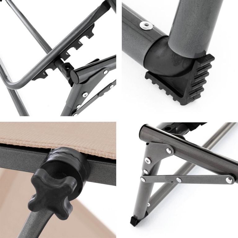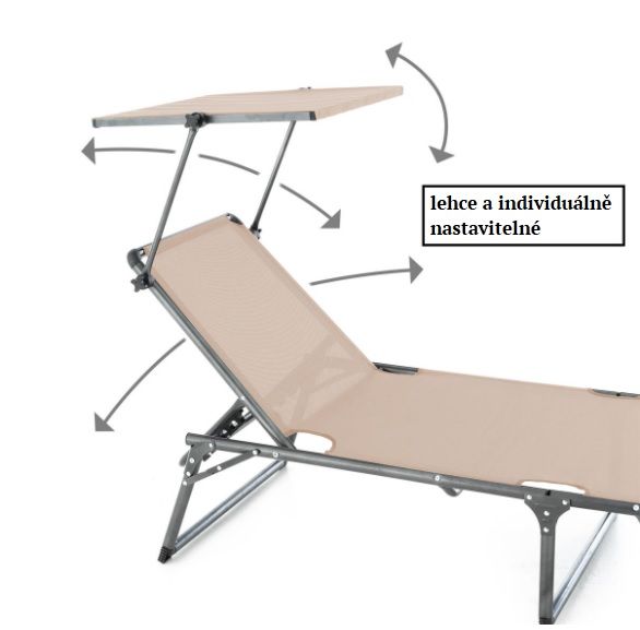 Leżak plażowy można regulować w 5 pozycjach. Składany daszek służy jako praktyczna ochrona przed cieniem. Aluminiowa rama jest niezwykle wytrzymała, a dzięki trzem wspornikom i osłonom antypoślizgowym z zabezpieczeniem przed zarysowaniem zapewnia stabilne ustawienie na każdej powierzchni. Leżak relaksacyjny ma wodoodporny pokrowiec i można go szybko złożyć. Dzięki swojej zwartości jest odpowiednim sprzętem na letnie podróże. Większe wymiary leżaka gwarantują wyjątkowy komfort.