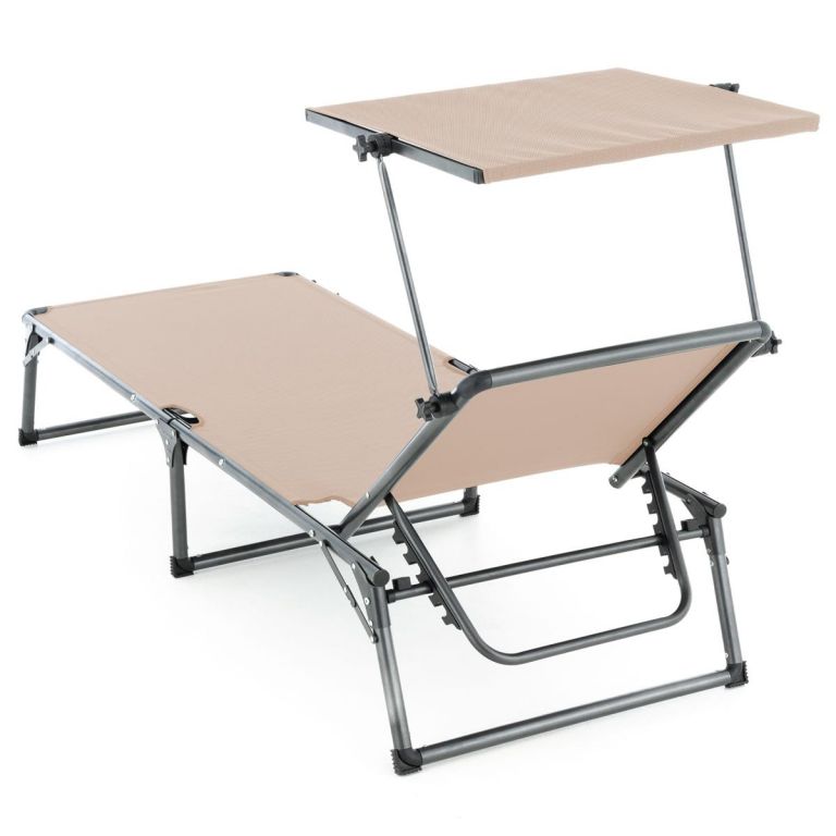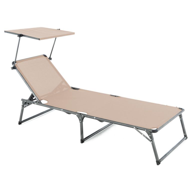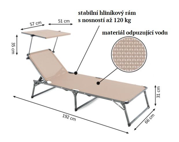 Leżak składany DIVERO z daszkiem, XXL, beżowy