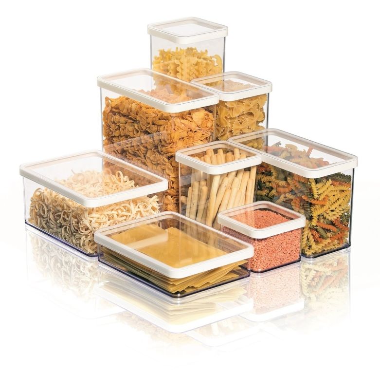 Są w pełni przezroczyste, z silikonową uszczelką w wieczku. Zapewniają świeżość przechowywanych produktów oraz chronią przed wpływami zewnętrznymi i wilgocią. Materiał nie zawiera BPA i jest dopuszczony do kontaktu z żywnością. Nadaje się do zmywarki, lodówki lub zamrażarki.