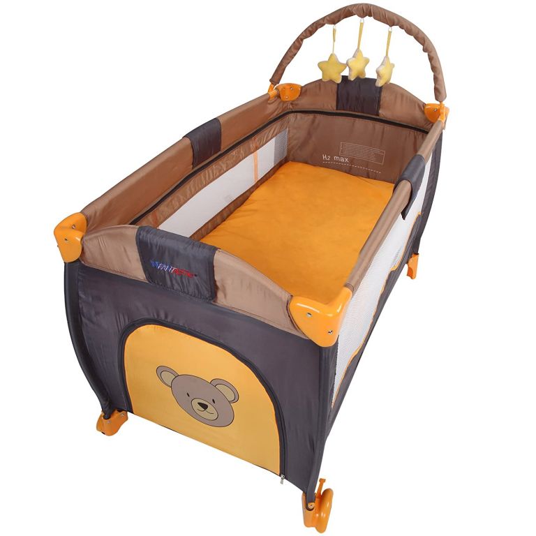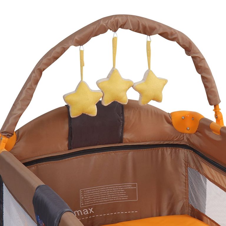 To łóżeczko jest naprawdę praktyczne. Zaoferuje Ci łuk i przewijak dla niemowląt. Materac jest wyściełany. Łuk jest z wiszącymi pluszowymi gwiazdami. Łóżko ma praktyczne wejście na zamek i schowek z przodu, wyściełane krawędzie i zaokrąglone rogi dla dzieci poniżej 36 miesiąca życia lub o maksymalnej wadze około 15 kg. Zmywalny pokrowiec zapewnia łatwą konserwację. Łóżeczko łatwo się składa i oszczędza ekonomicznie.