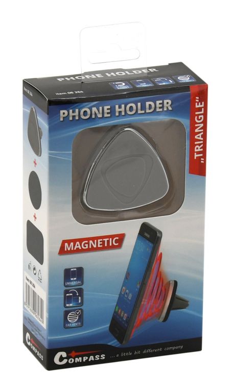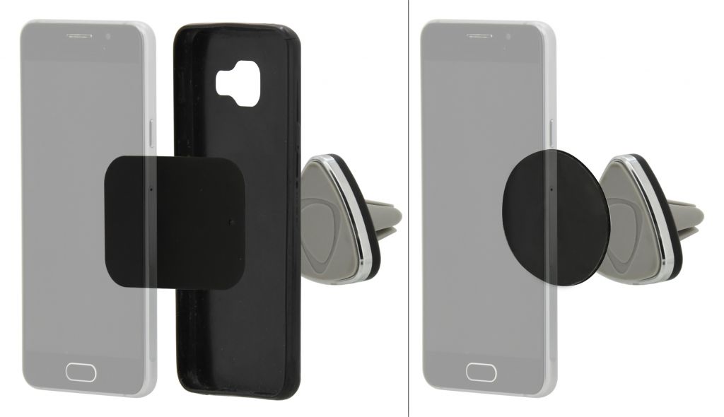 Uchwyt można łatwo umieścić w kratce wentylacyjnej samochodu. Wystarczy zaopatrzyć telefon w naklejkę magnetyczną lub, jeśli ma pokrowiec, magnetyczną podkładkę między pokrowiec a telefon. Podkładka zapewnia natychmiastowe zamocowanie po umieszczeniu telefonu w uchwycie.