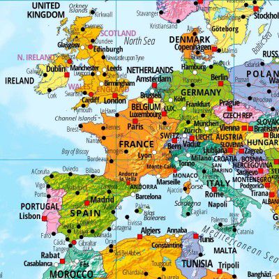 Większość podobnych produktów ma bardzo niską rozdzielczość i jest interpolowana, tzn. Mapa jest nieostra, a szczegóły są trudne do rozpoznania. Nasza mapa świata oferowana w formacie XXL zawiera zaostrzone szczegóły. Ponadto produkt dostarczany jest zwinięty, a nie w stanie złożonym, jak to często się zdarza (a więc u nas piękny plakat nie jest zniszczony!). Otrzymasz od nas najnowszą wersję mapy świata z aktualizacją 2014 w języku angielskim.