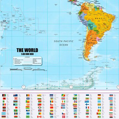 Gigantyczna mapa świata o wymiarach 140x100 cm z flagami i informacjami