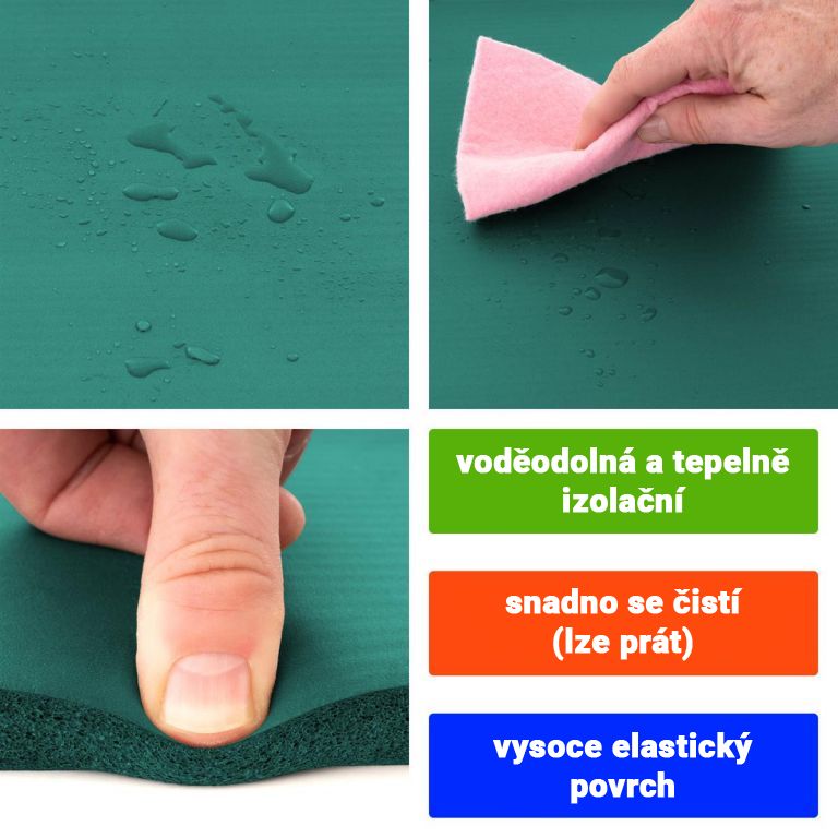 Mata fitness jest odporna na rozdarcie i ślizganie się, a także jest wodoodporna (można myć) i izoluje termicznie, dzięki czemu nadaje się również na kemping. Dodatkowo amortyzuje wstrząsy, dzięki czemu jest łagodny dla stawów. Bez plastyfikatorów (bez ftalanów). Ta wysokiej jakości mata gimnastyczna wykonana z przyjaznej dla skóry pianki przekonuje wysokością (grubością) 15 mm. Po użyciu można go łatwo ponownie zwinąć.