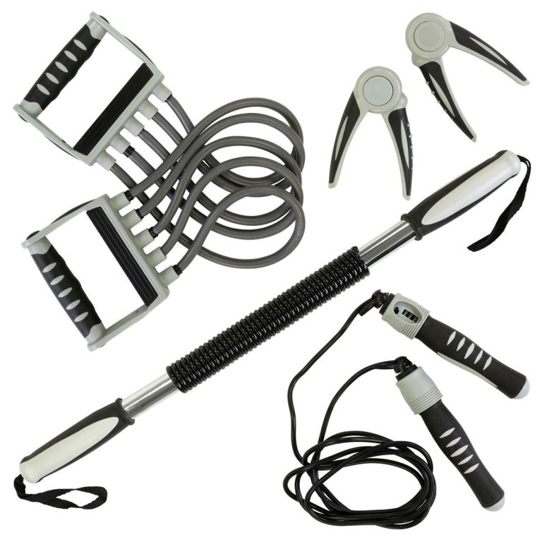 Elastyczna opaska ekspandera przeznaczona jest do kompleksowego treningu wszystkich grup mięśniowych Twojego ciała. W szczególności można nim kształtować górną część ciała. W zależności od poziomu treningu możesz indywidualnie regulować napięcie. Trenażer z uchwytem sprężynowym ćwiczy mięśnie przedramion i dłoni. Poprawiają chwyt dłoni i palców, wytrzymałość, elastyczność, napięcie mięśniowe oraz motorykę małą i dużą. Skakanka wyposażona jest w łożysko kulkowe, które ułatwia skręcanie i bujanie. Zintegrowane jest również liczydło, a ergonomiczne, sznurkowe uchwyty zapewniają wygodę i antypoślizgowy uchwyt. Wysokiej jakości sprężyna / sztanga typu royal oferuje siłę dzięki sprężynie ze stali węglowej, która dostosowuje się indywidualnie do wysiłku, dzięki czemu łaskocze tak mocno, jak to możliwe - idealna do budowania masy mięśniowej. Tutaj ćwiczy się całą górną część ciała, czyli ramiona, szyję i barki, klatkę piersiową, triceps, bicepsy i mięśnie piersiowe.