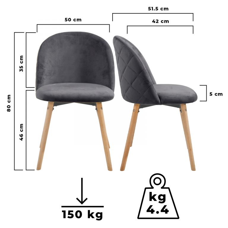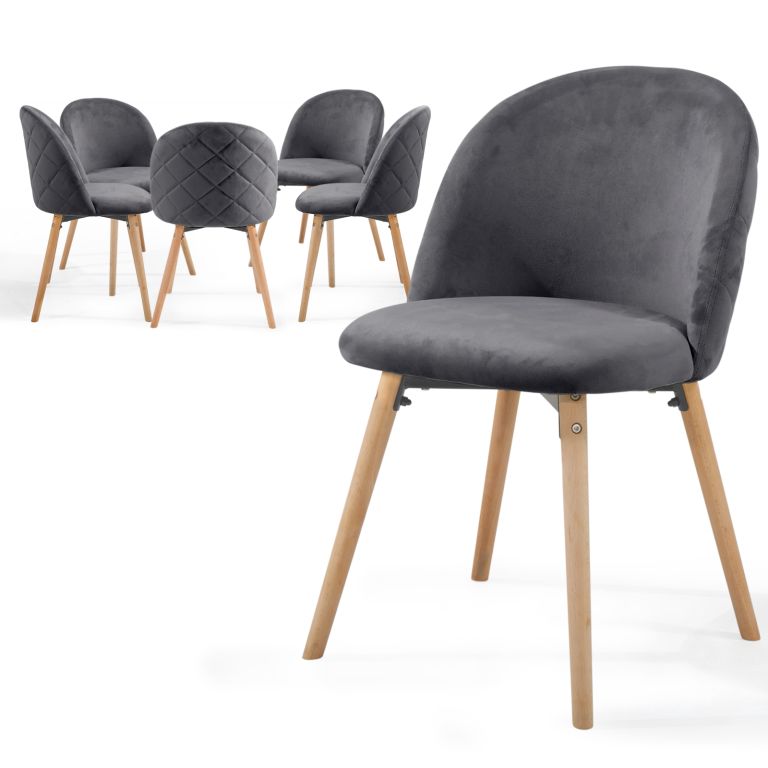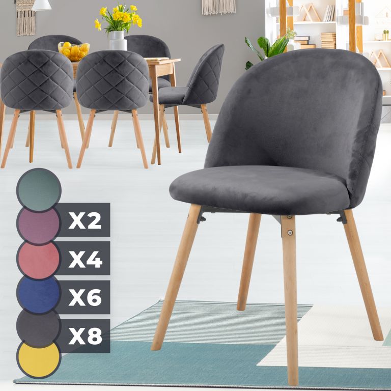 Meble w stylu skandynawskim to od pewnego czasu trend w gospodarstwach domowych i placówkach handlowych. Te krzesła o nowoczesnym designie oferują nogi wykonane z drewna bukowego, które zapewnią dużą stabilność i przyjemne aksamitne pokrycie dla prawidłowego siedzenia.