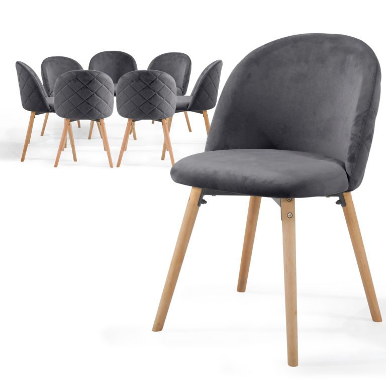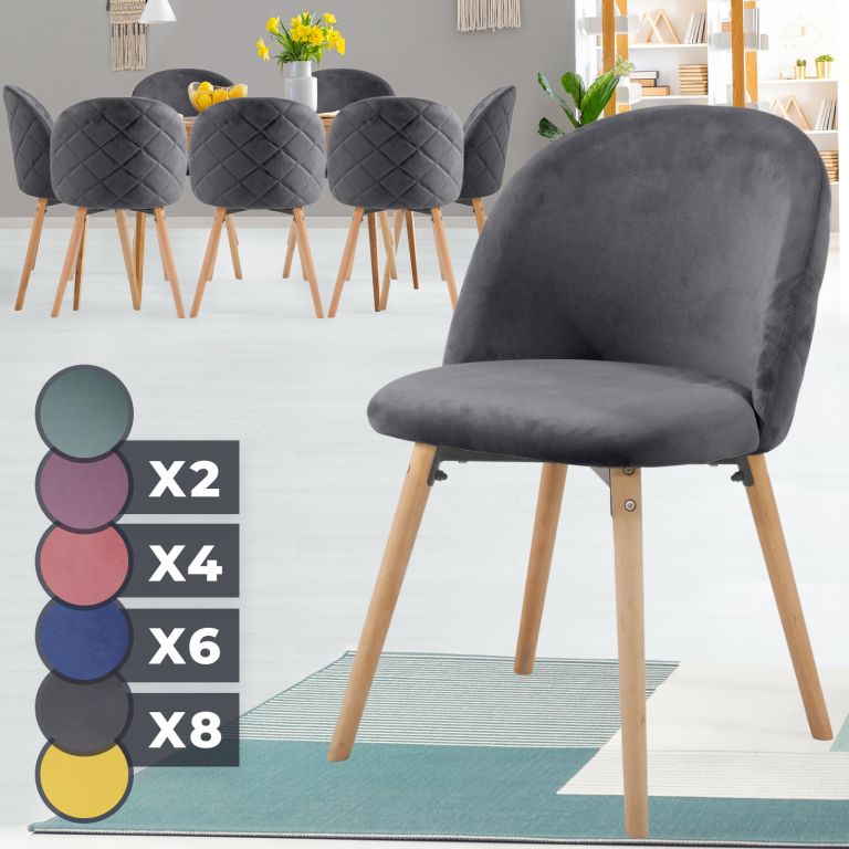 Meble w stylu skandynawskim to od pewnego czasu trend w gospodarstwach domowych i placówkach handlowych. Te krzesła o nowoczesnym designie oferują nogi wykonane z drewna bukowego, które zapewnią dużą stabilność i przyjemne aksamitne pokrycie dla prawidłowego siedzenia.