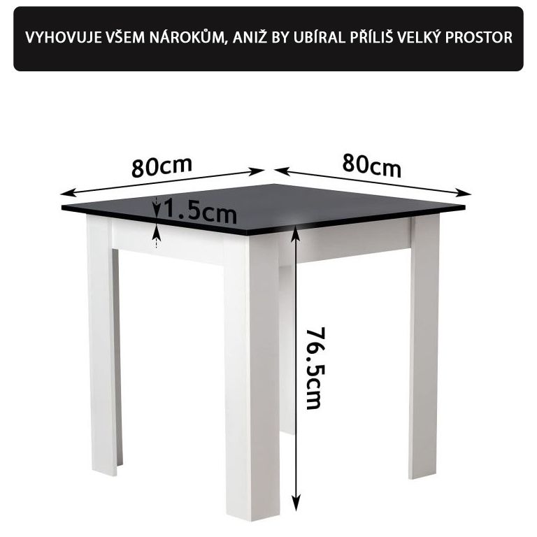 Ten elegancki stół do jadalni pasuje do każdego mieszkania i domu. Kompaktowy rozmiar tego stołu jest idealny zarówno do małej kuchni, jak i do salonu. Stół kuchenny wykonany jest z łatwej w utrzymaniu konstrukcji MDF z białymi nogami i czarnym blatem, powłoka z żywicy melaminowej zapewnia długą żywotność. Ten tradycyjny stół to właściwy wybór do łączenia różnych stylów. Ponadczasowy design tego stołu do jadalni dopełni każde pomieszczenie.