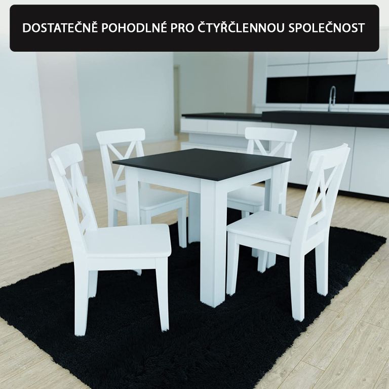 MIADOMODO Stół do jadalni dla 4 osób, czarny, 80x80x76,5 cm