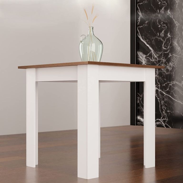 Ten elegancki stół do jadalni pasuje do każdego mieszkania i domu. Kompaktowy rozmiar tego stołu jest idealny zarówno do małej kuchni, jak i do salonu. Stół kuchenny wykonany jest ze złota w formie konstrukcji MDF z białymi nogami i czarnym błotem, pokrycie z żywicy melaminowej zapewnia długą żywotność. Ten tradycyjny stół nadaje się do łączenia różnych stylów. Ponadczasowy design tego stołu doskonale sprawdzi się w każdym miejscu.