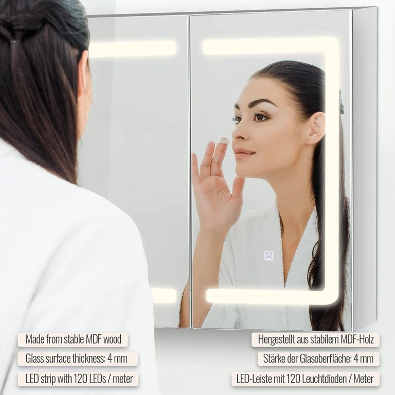 Nadaj swojej łazience futurystyczny wygląd dzięki naszym szafkom lustrzanym LED, które łączą współczesną estetykę z innowacyjną technologią i wysoką funkcjonalnością. Przestrzeń do przechowywania szafki łazienkowej jest więcej niż wystarczająca na wszystkie akcesoria łazienkowe, niezależnie od tego, czy chodzi o pielęgnację skóry, makijaż czy potrzeby higieniczne. Lustra dotykowe z funkcją ściemniania zapewniają specjalne światło, które dostosowuje się do Twojego nastroju: ciepłe, zimne, a nawet neutralne białe.