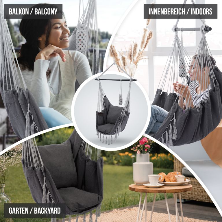 Zrelaksuj się w wygodnym fotelu wiszącym na zewnątrz. Idealny do relaksu po męczącym dniu. Zaaranżuj swoje ulubione miejsce do relaksu już teraz!