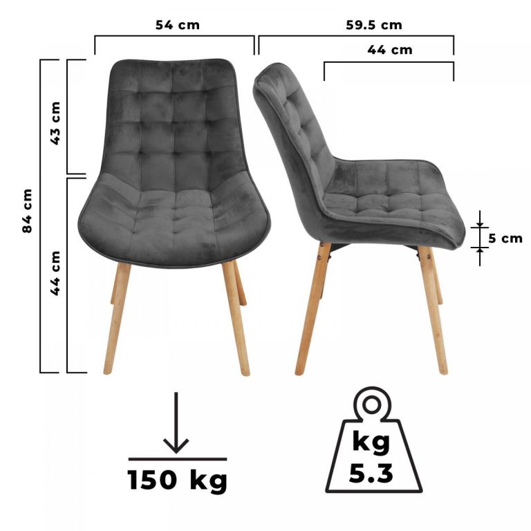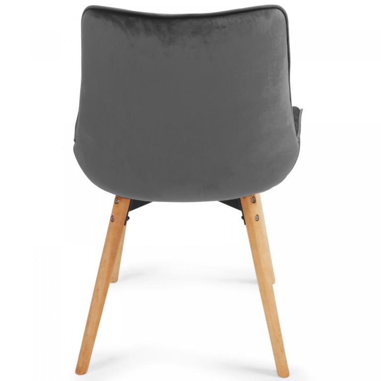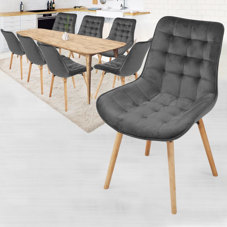 Te nowoczesne, a jednocześnie vintage krzesła do jadalni mają siedzisko wykonane z aksamitu i nogi wykonane z drewna bukowego i są idealnym elementem