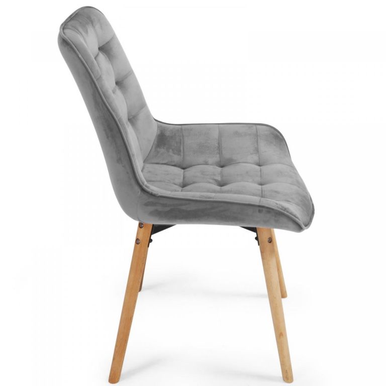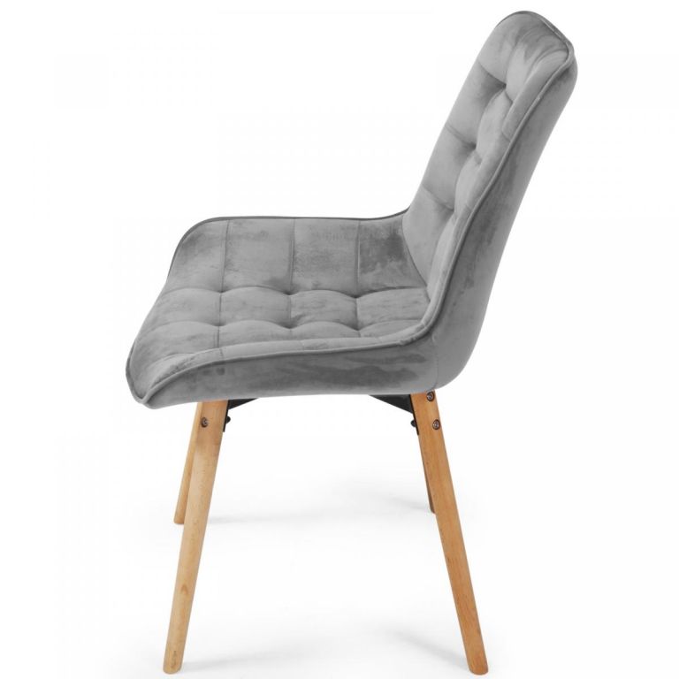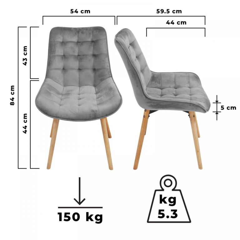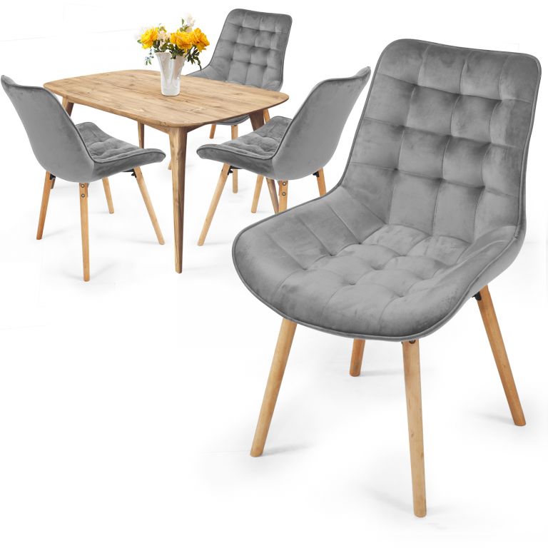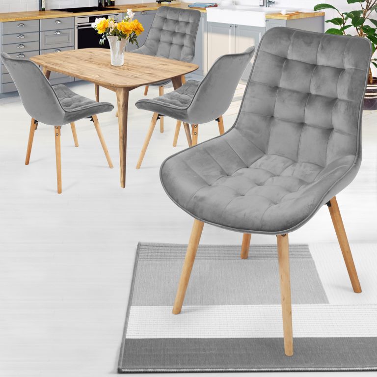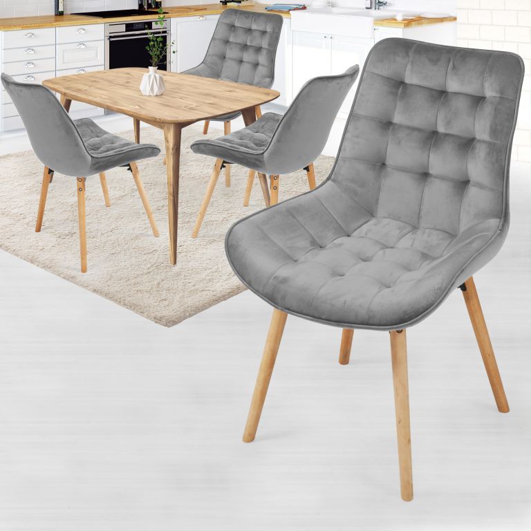 Te aksamitne krzesła do jadalni sprawią, że każda kolacja stanie się niezapomnianym przeżyciem. Stopki antypoślizgowe wykonane są z drewna bukowego.