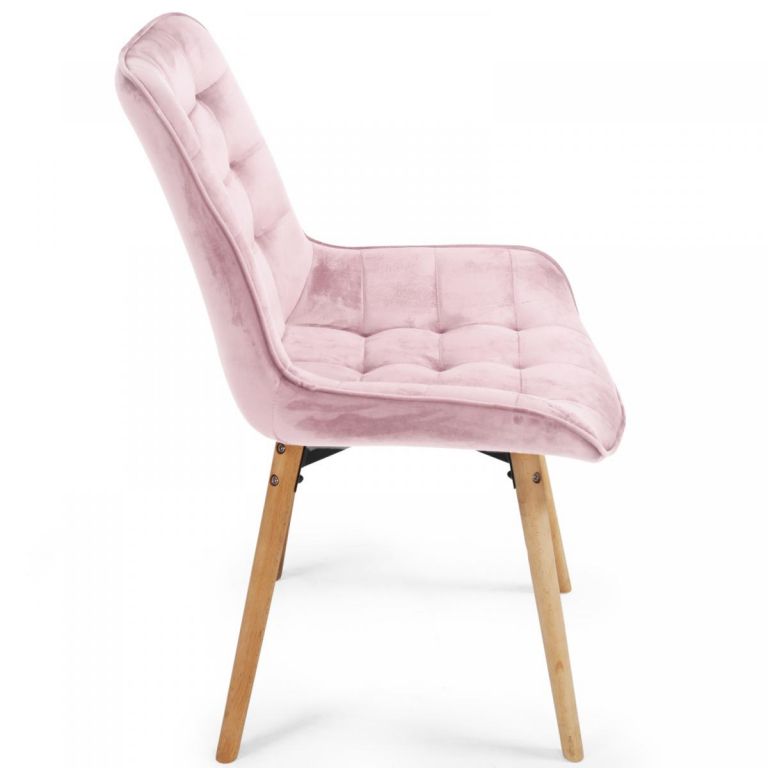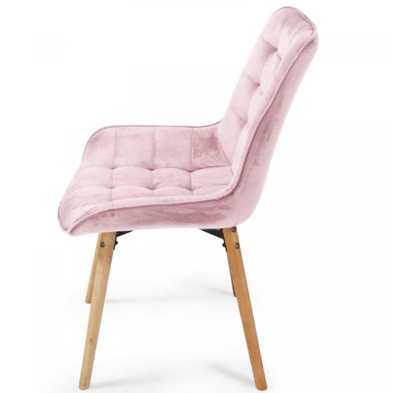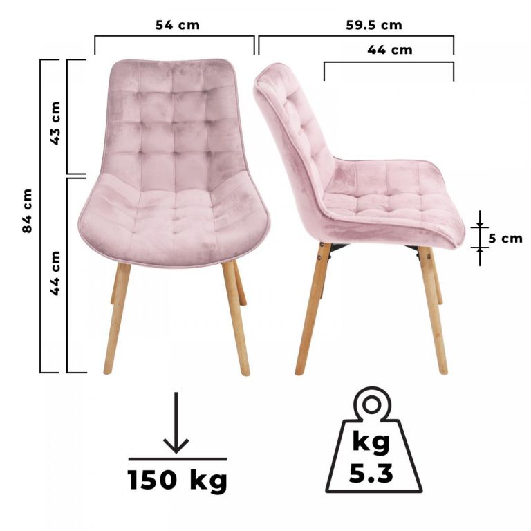 Te aksamitne krzesła do jadalni zamieniają każdą kolację w niezapomniane przeżycie. Stopki antypoślizgowe wykonane są z drewna bukowego.