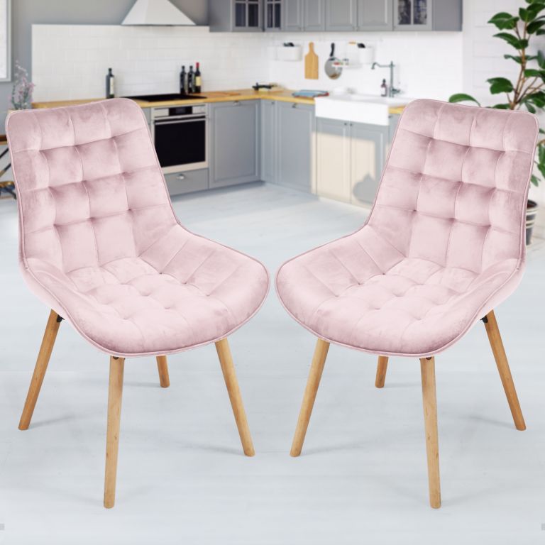 MIADOMODO Zestaw pikowanych krzeseł do jadalni, różowy, 2 sz