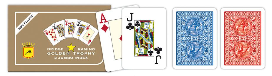 Modiano 2 rogowe karty, luksusowe RAMINO GOLDEN TROPHY - 100% plastikowe karty pokerowe o jumbo indeksach w 2 rogach.