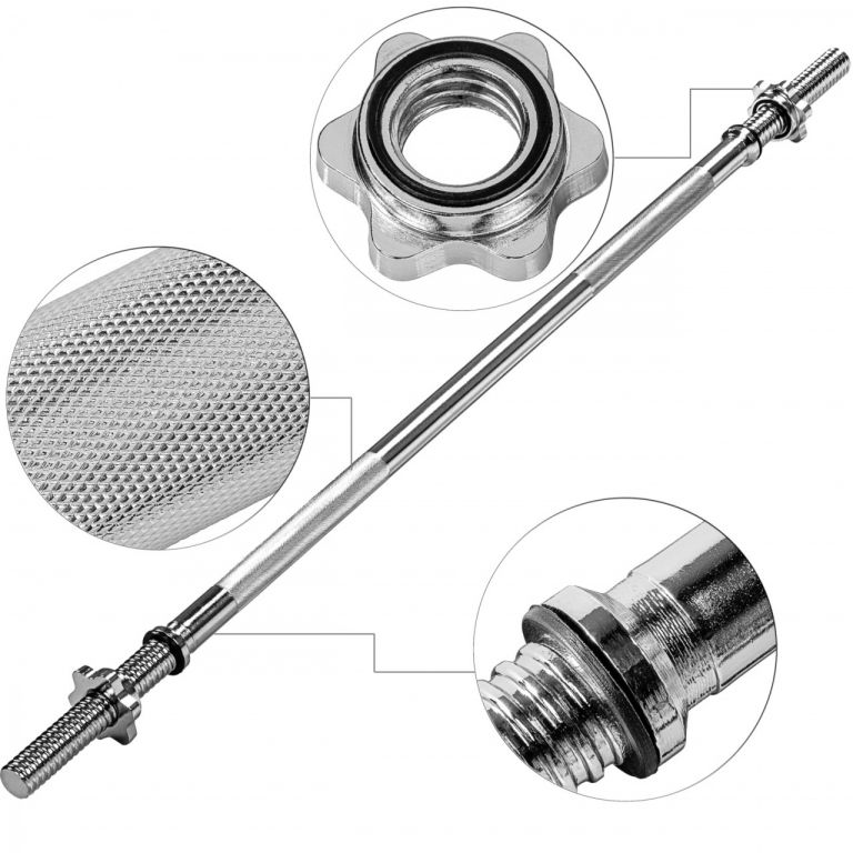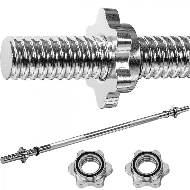 Zamknięcia gwiaździste zapobiegają nieprzyjemnemu grzechotaniu ciężarów. Aby ręce nie ślizgały się podczas treningu, na gryfie jest ryflowanie.