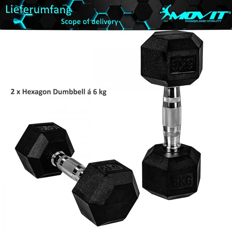 MOVIT® Sześciokątna gumowa sztanga 6 kg, zestaw 2