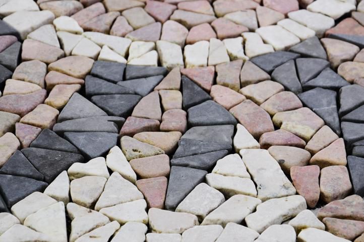 Piękna mozaika o grubości 8 mm przyklejona do siatki ma gładką powierzchnię, a wszystkie krawędzie są zaokrąglone. Ta mozaika wykonana jest z marmuru i granitu. Konieczne jest użycie zaprawy na prawdziwym kamieniu.