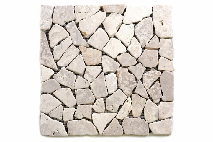 Mozaika z naturalnego kamienia jest przyklejona do siatki i łatwo można nią obłożyć większe powierzchnie. Mozaiką można obkładać wnętrzna pomieszczeń.Jest idealna do obkładania ścian i podłóg. Jest konieczne użycie zaprawy do naturalnego kamienia.