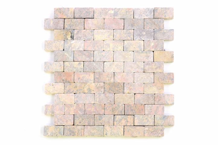 Mozaika z kamienia naturalnego 30 x 30 cm na siatce z tworzywa ułatwiającej montaż, to doskonała okładzina kamienna ścian i podłóg. Wykonana z małych kawałków kamienia marmurowego, przygotowana do bezpośredniego układania na ścianę lub podłogę. Zalecamy impregnowanie mozaiki preparatami przeznaczonymi do danego typu kamienia i używać fug przeznaczonych do mozaiki kamiennej.