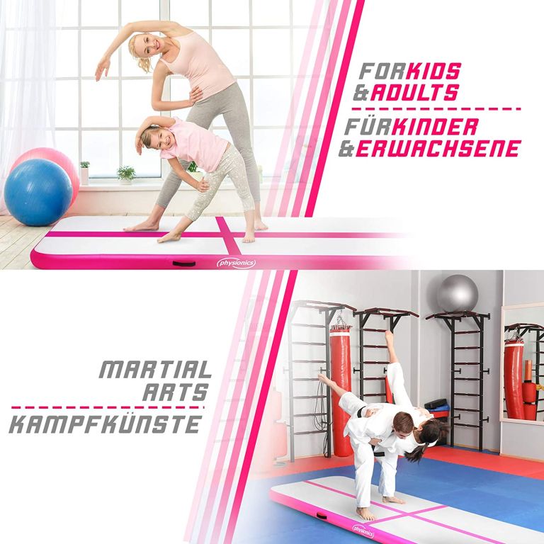 Ta nadmuchiwana mata jest przeznaczona przede wszystkim do gimnastyki, parkour, tańca, sztuk walki lub innych sportów akrobatycznych.