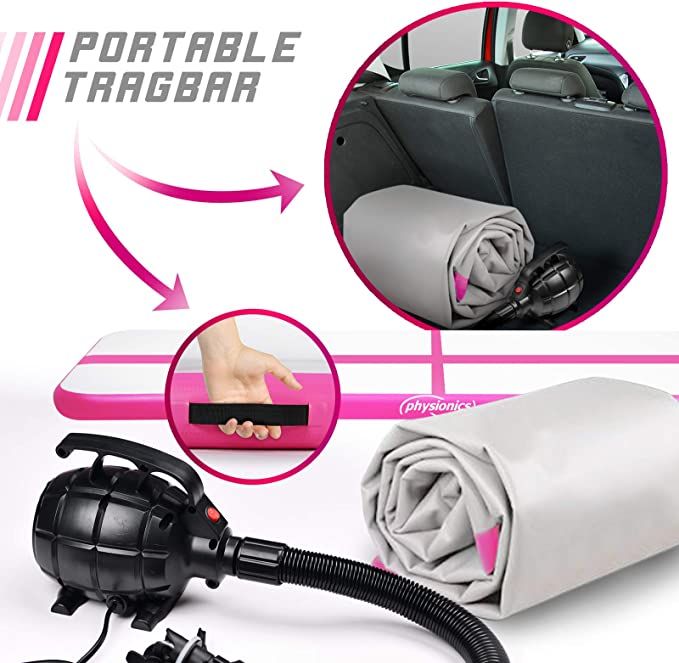 Nadmuchiwana mata gimnastyczna, 300 x 100 x 10 cm, różowa