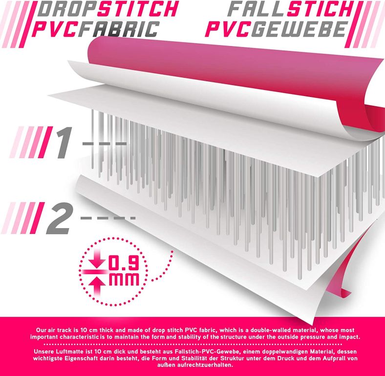 Nasza mata do ćwiczeń ma grubość 10 cm i jest wykonana z plandeki PVC, materiału dwuściennego, którego główną cechą jest zachowanie kształtu i stabilności konstrukcji pod wpływem nacisku i uderzeń z zewnątrz. Ta mata jest wyposażona w elektryczną pompkę powietrza i zestaw naprawczy. Nadaje się do różnych sportów halowych i zewnętrznych.