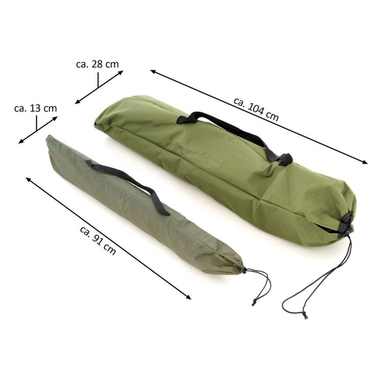 Stalowa rama zapewnia stabilną pozycję na każdej powierzchni, na plaży w piasku, łące i kamieniach. Dla jeszcze bardziej komfortowego snu wysoki namiot oferuje wystarczająco dużo miejsca na podkładkę izolacyjną lub materac jako dodatkową podkładkę. Okno z moskitierą zapewnia przytulną atmosferę i dopływ świeżego powietrza, ale jednocześnie chroni przed nieprzyjemnymi owadami. Namiot można zamknąć na zamek błyskawiczny. Namiot z leżakiem jest łatwy i szybki do ustawienia. Łóżko kempingowe i namiot zewnętrzny mogą być używane osobno.