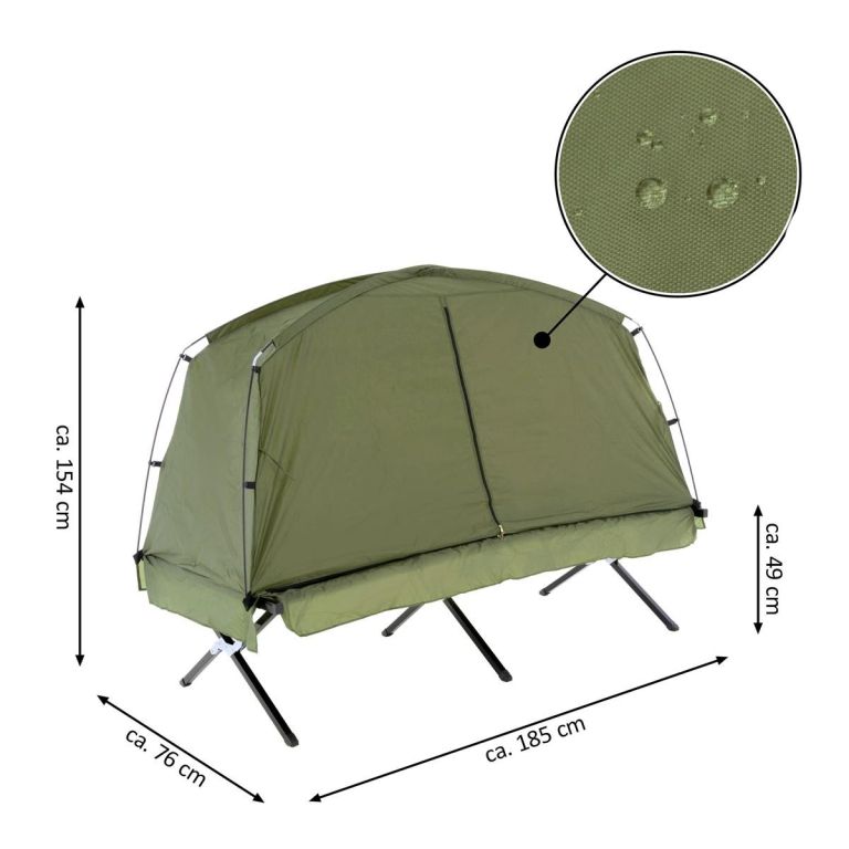 Namiot dla jednej osoby z leżakiem - 185 x 76 x 154 cm, ziel