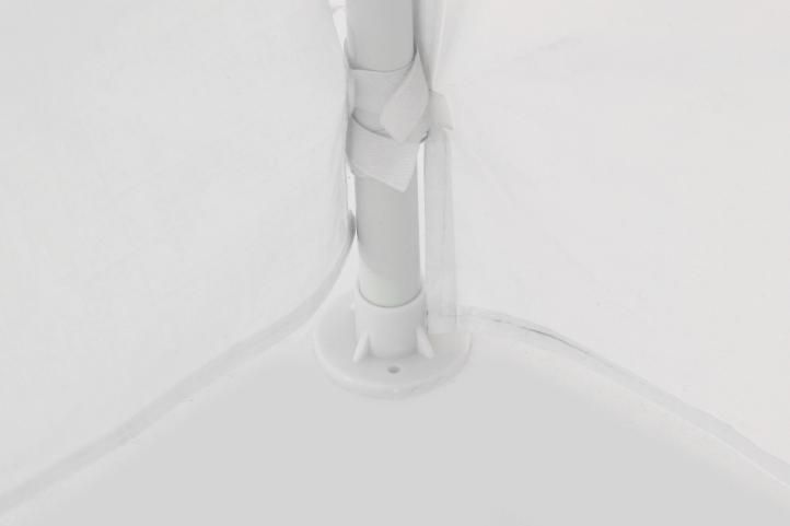 Proszę pamiętać: że ten namiot jest bardzo lekki, niedrogi i początkowo zaprojektowany do ochrony przed światłem słonecznym. W przypadku silniejszego deszczu, wiatru proszę go złożyć, aby długo Państwu mógł służyć. Przynajmniej w takich sytuacjach zalecamy zabezpieczyć namiot dodatkowymi szpilami i innymi mocowaniami podczas a także usunąć boczne ściany i dach.