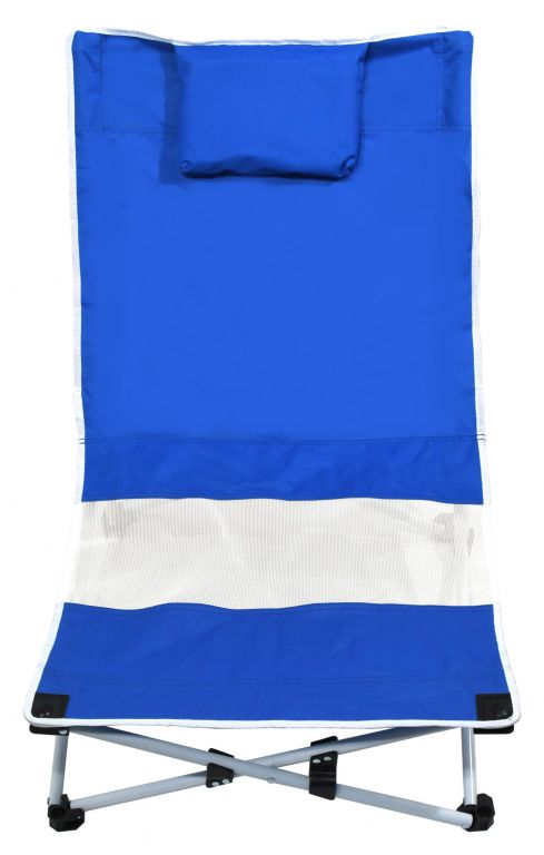 Rozpakowany leżak ma wymiary 55 x 65 x 47 cm z siedziskiem na wysokości 20 cm. Część podtrzymująca jest zakończona podkładką, dla maksymalnego komfortu.