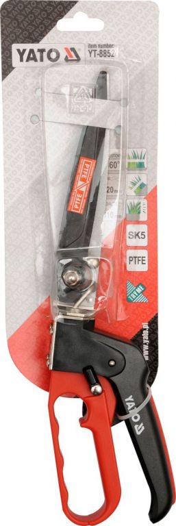 Nożyce do trawy o łącznej długości 310 mm. 8 pozycji regulacji. Obrotowa głowica 360 stopni. Ostrze pokryte PTFE. Uchwyty wyposażone w zabezpieczenie antypoślizgowe.