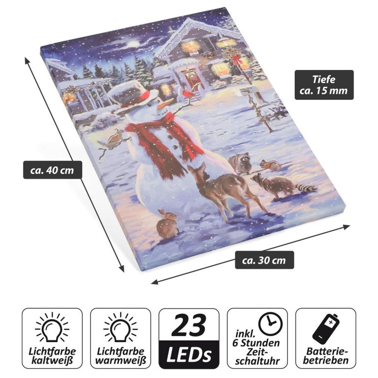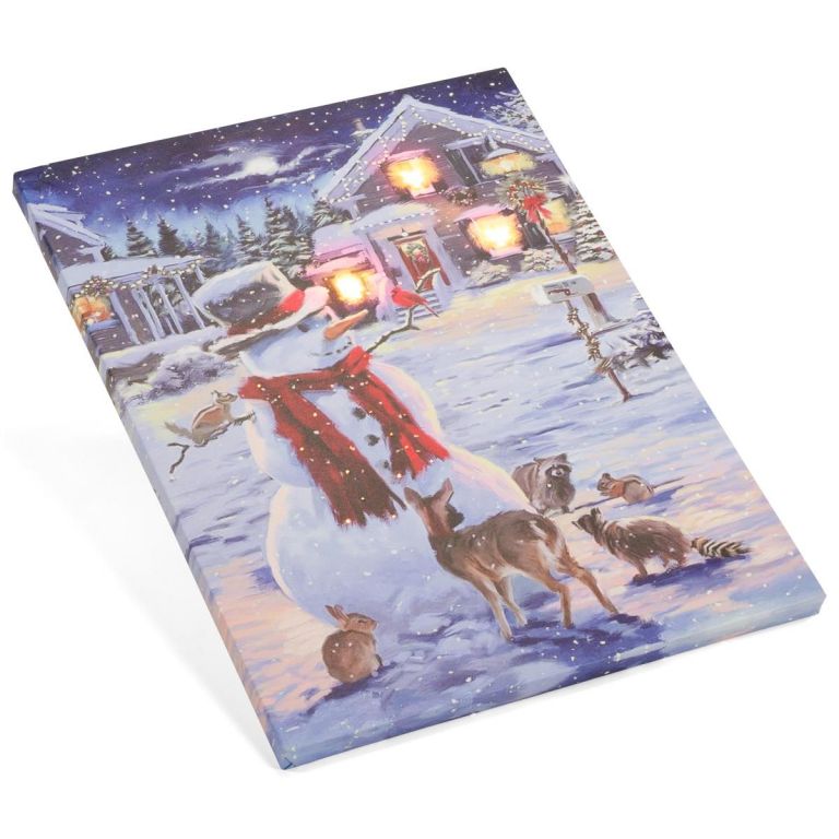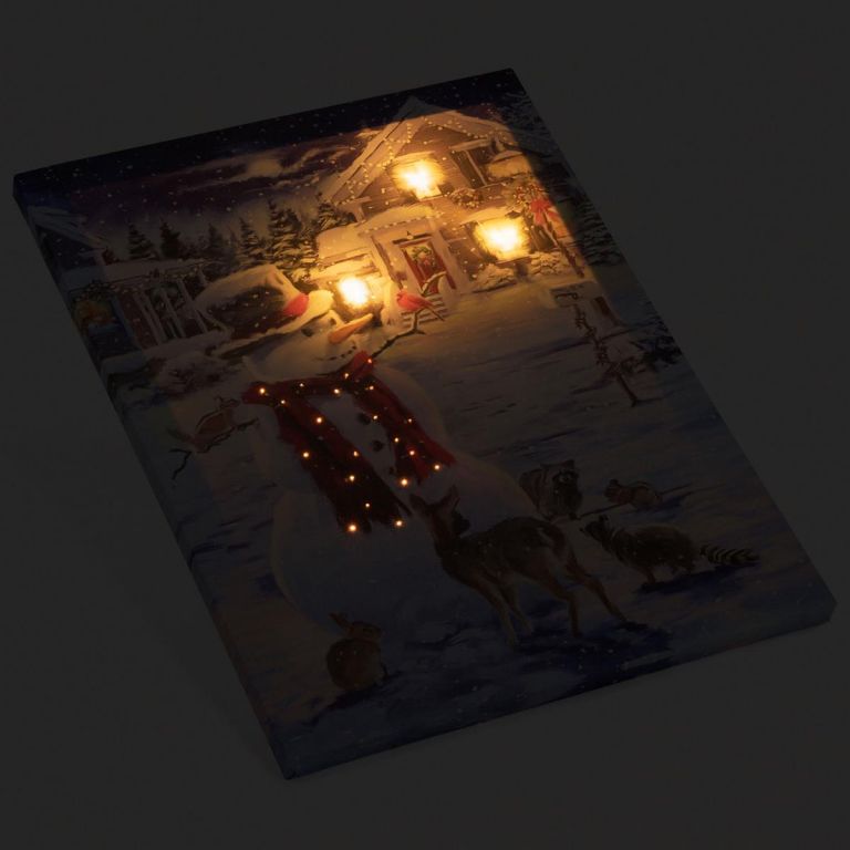 Obraz podświetlany bałwan, 3 LED, 30 x 40 cm