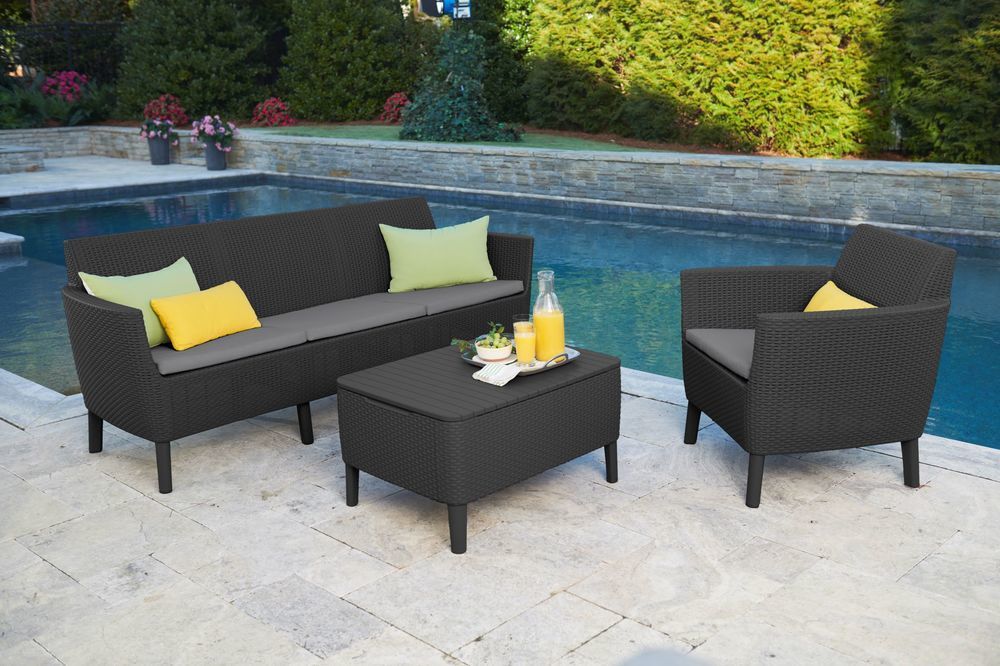 Ogrodowa polirattanowa sofa SALEMO - trzyosobowa, grafitowa