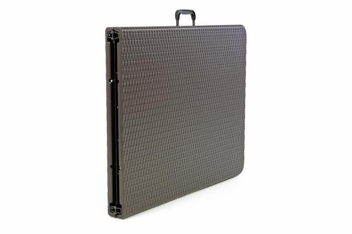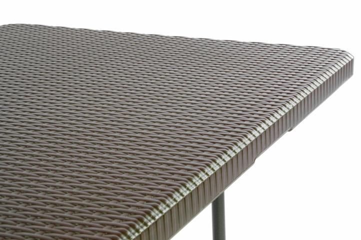 Brązowy stół składany przyciągnie Państwa szlachetnym ratanowym wzornictwem.