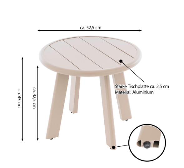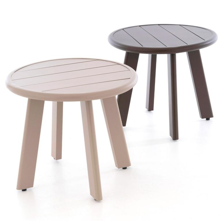 Okrągły aluminiowy stolik, beżowy