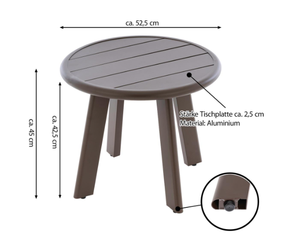 Okrągły aluminiowy stolik, ciemnobrązowy