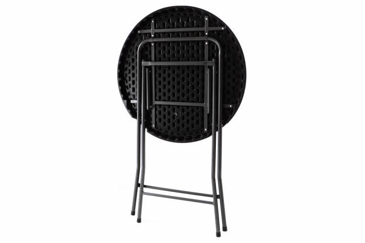 Szybko rozłożysz stabilny stół . Ten stolik zachęca do miłej rozmowy na przyjęciu firmowym, pokazie, uroczystości lub przyjęciu. Jeśli go nie potrzebujesz, możesz go łatwo złożyć i przechowywać. Niezwykle niska waga ułatwia transport. Czarny wygląd z rattanu nadaje stołowi szlachetnego wyglądu.